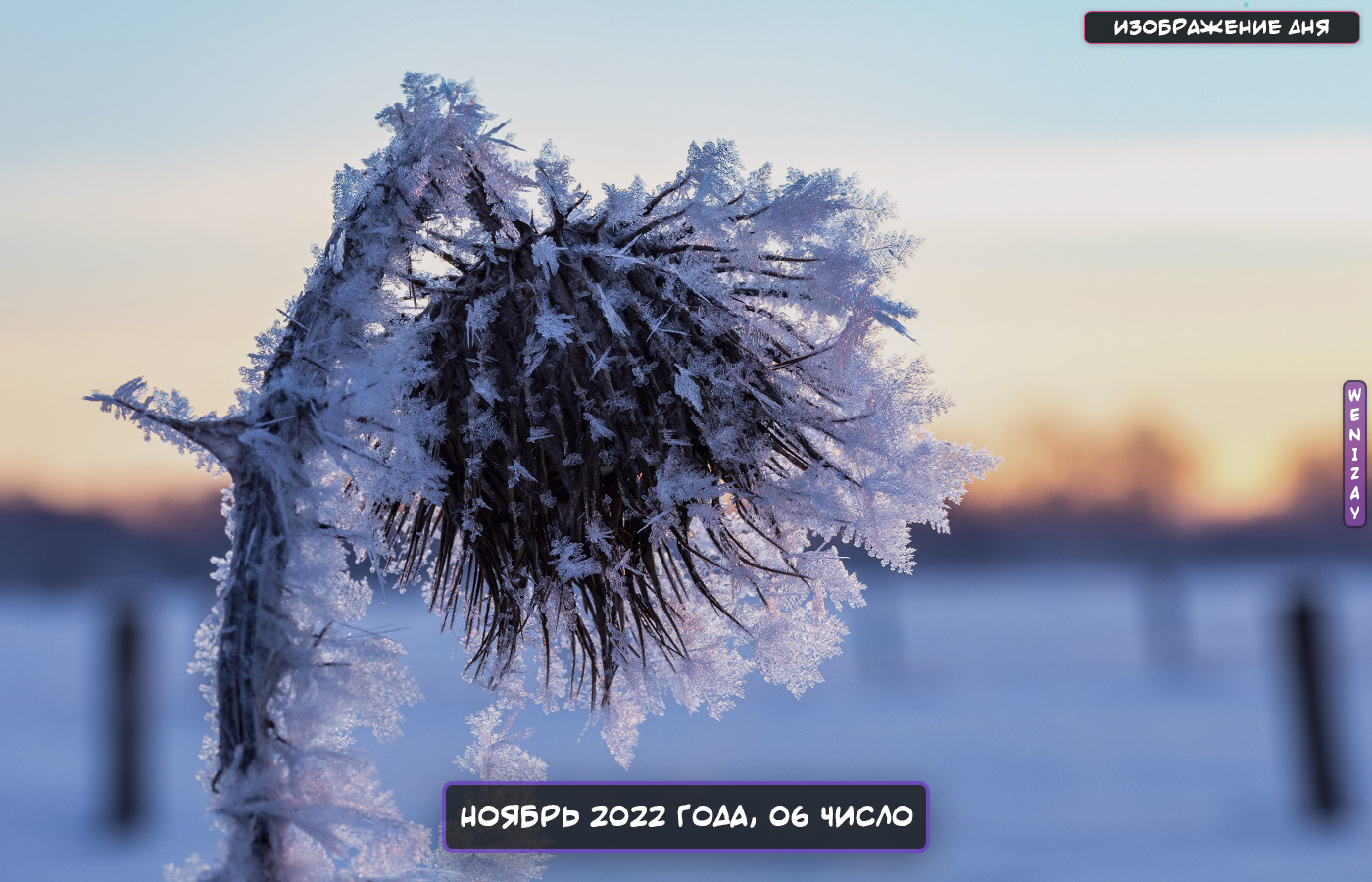 Фото моменты Сегодня (6-го ноября 2022 года) в рубрике изображение дня, покрытый инеем чертополох в Дюльмене, Северный Рейн-Вестфалия